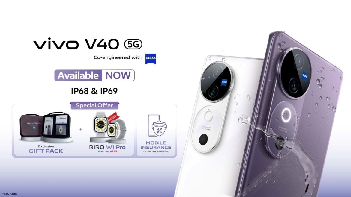 ১২ জিবি র‌্যামের সঙ্গে ২৫৬ জিবি স্টোরেজ পাওয়া যাবে ভিভো ভি৪০ ফাইভজিতে। ব্যাকসাইডে রয়েছে গ্লাস ব্যাককভার ম্যাটেরিয়াল এবং লক আনলকের জন্য ডিসপ্লেতেই রয়েছে ইনডিসপ্লে অপ্টিক্যাল ফিঙ্গারপ্রিন্ট সেন্সর। ব্যাক সাইডে জেমিনি রিং ডিজাইনের ক্যামেরা মডিউলের সাথে দুইটি রঙে পাওয়া যাবে ভিভো ভি৪০ ফাইভজি। একটি নেবুলা পার্পল এবং অপরটি মুনলাইট হোয়াইট। ভি৪০ ফাইভজি দাম পড়বে ৬২ হাজার ৯৯৯ টাকা। স্মার্টফোনটি কিনলেই গিফট হিসেবে থাকছে রিরো ডব্লিউ১ প্রো স্মার্ট ওয়াচ, যার দাম ৪ হাজার ৭৯৯ টাকা। সাথে আরো থাকছে এক্সক্লুসিভ গিফট প্যাক ও পোস্টার কার্ড। অফারটি চলবে আগামী ১২ অক্টোবর পর্যন্ত।
