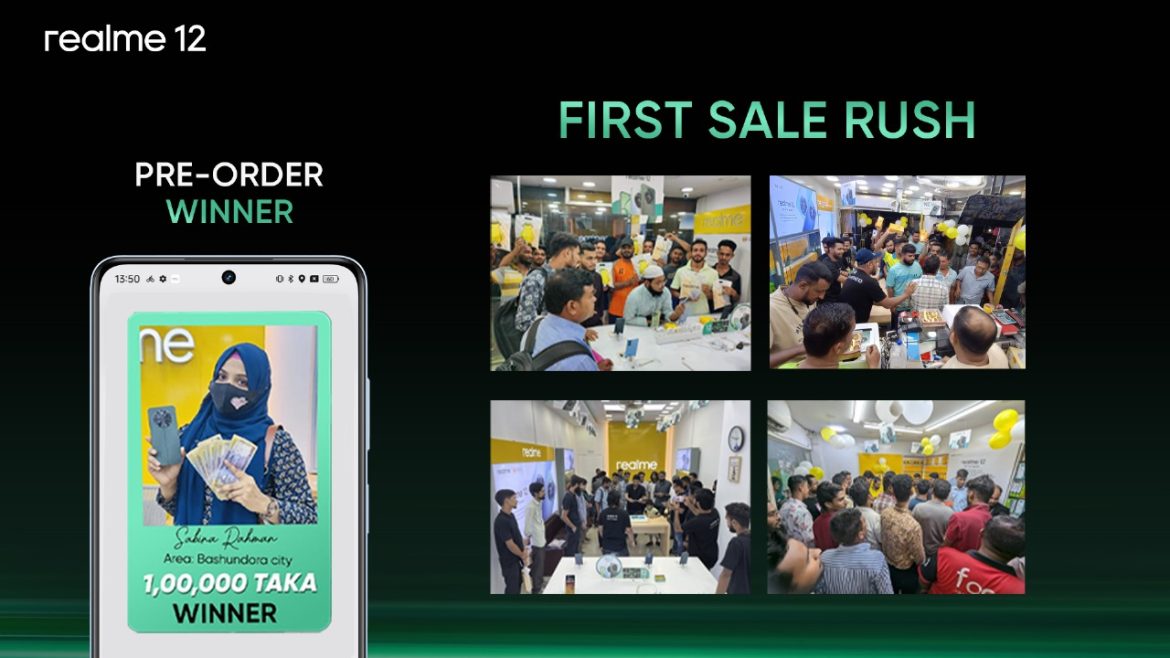 তরুণদের জনপ্রিয় স্মার্টফোন ব্র্যান্ড রিয়েলমি গ্রাহকদের বহুল প্রতীক্ষিত ফোন রিয়েলমি ১২-এর প্রি-অর্ডার ক্যাম্পেইনের বিজয়ীদের নাম ঘোষণা করেছে। এরই মধ্যে দারুণ ফিচারসমৃদ্ধ এই স্মার্টফোন সংগ্রহের মাধ্যমে নগদ অর্থ ও ‘একটি কিনলে একটি ফ্রি’ অফারের জন্য দেশের বিভিন্ন দোকানে ক্রেতাদের উপচে পড়া ভিড় দেখা গেছে। ক্যাম্পেইনে অংশ নেওয়া মোট পাঁচজন বিজয়ী পুরস্কার হিসেবে পেয়েছেন নগদ অর্থ। তাদের মধ্যে একজন পেয়েছেন ১ লাখ টাকা এবং বাকি চারজনের প্রত্যেকে পেয়েছেন ৫০ হাজার টাকা করে পুরস্কার। এছাড়া, আরও ৮ জন ‘একটি কিনলে একটি ফ্রি’ অফারের মাধ্যমে বিনামূল্যে জিতে নিয়েছেন আরও একটি রিয়েলমি ১২। রিয়েলমিপ্রেমীদের সর্বোত্তম অভিজ্ঞতা দিতে প্রতিশ্রুতিবদ্ধ জনপ্রিয় এই ফোন ব্র্যান্ড। প্রতিশ্রুতি বাস্তবায়নের অংশ হিসেবে রিয়েলমি ১২ উন্মোচনের সময় ক্যাম্পেইন ও অফার প্রদানের] মাধ্যমে বিশ্বস্ত ব্যবহারকারীদের উচ্ছ্বাস ও আগ্রহের পুরস্কার প্রদানের চেষ্টা করেছে রিয়েলমি।