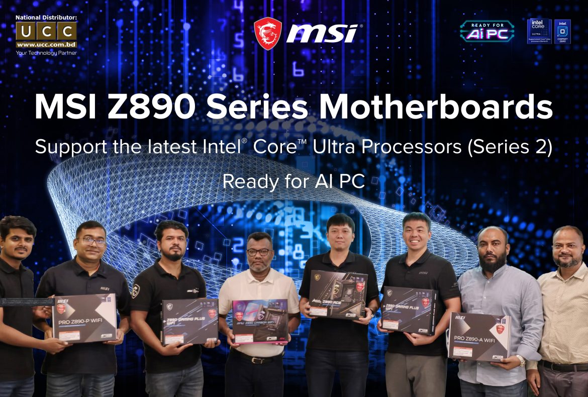 বিশ্বের স্বনামধন্য আইটি প্রতিষ্ঠান MSI “ ইন্টেল কোর আল্ট্রা সিরিজ ২” প্রসেসর সাপোর্টেড MSI Z890 সিরিজ মাদারবোর্ডের আনুষ্ঠানিক বাজারজাত শুরু করলো ইউসিসি। বাংলাদেশের বাজারে আইটি পণ্যের অন্যতম সেরা পরিবেশক প্রতিষ্ঠান ইউসিসি এক সংক্ষিপ্ত আয়োজনের মাধ্যমে “MSI Z890” সিরিজ মাদারবোর্ডের আনুষ্ঠানিক মোড়ক উন্মোচন করেন। মোড়ক উন্মোচন অনুষ্ঠানে উপস্থিত ছিলেন MSI ইন্দো-প্যাসিফিক সেলস টিম ইন চার্জ, মিঃ উইন্টার লি, MSI ইন্দো-প্যাসিফিক সেলস টিম, মিঃ কেভিন চাং, MSI বাংলাদেশ প্রোডাক্ট এন্ড মার্কেটিং ম্যানেজার, জনাব তৌহীদ হোসেন, MSI বাংলাদেশ প্রোডাক্ট ম্যানেজার, জনাব হুমায়ুন কবীর, ইউসিসির জিএম এন্ড হেড অফ সেলস, জনাব শাহিন মোল্লা, ডিজিএম এন্ড হেড অফ প্রোডাক্ট ম্যানেজমেন্ট, জনাব জয়নুস সালেকিন ফাহা্দ, এজিএম- প্রোডাক্ট ম্যানেজমেন্ট, জনাব নুরুল আমিন ভুইয়া মিনার সহ আরো অনেকে। গেমিং প্রফেশনাল কাজ এবং AI এর জন্য গ্রাহকদের চাই সর্বাধুনিক প্রযুক্তির নতুন মাদারবোর্ড, আর গ্রাহকদের সেই চাহিদা মেটাতেই বিশ্ব বাজারের সাথে সমন্বয় রেখে বাংলাদেশের বাজারেও আজ থেকে বাজারজাত শুরু হল ইন্টেল কোর আল্ট্রা সিরিজ ২ এর নতুন Z890 সিরিজের ৬টি মাদারবোর্ড ।