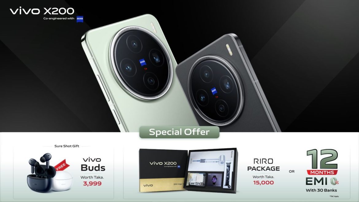 নতুন যুগের সাথে তাল মিলিয়ে চলতে ভিভো এক্স২০০ এর নতুন ফানটাচ ওএস ১৫ অপারেটিং সিস্টেম এ রয়েছে ট্রান্সক্রিপ্ট অ্যাসিস্ট, এআই নোট অ্যাসিস্ট, এআই ইরেজ, ডেটা পার্জ এবং ডেটা সিকিউরিটির মতো স্মার্ট ফিচার। ভিভো এক্স২০০ পাওয়া যাবে ন্যাচারাল গ্রিন ও কসমস ব্ল্যাক এই দুই রঙে। এর দাম পড়বে ১,৩৯,৯৯৯ টাকা। ভিভো এক্স২০০ স্মার্টফোন কিনলেই মিলবে এয়ারবাডস। যার দাম ৩,৯৯৯ টাকা। এর পাশাপাশি গ্রাহকরা বেছে নিতে পারবেন ১৫০০০ টাকা মূল্যের রিরো প্যাকেজ অথবা ১২ মাস পর্যন্ত ০% ইএমআই ফোনের সুবিধা মত দুটি চমৎকার অফারের মধ্যে যেকোনো একটি।