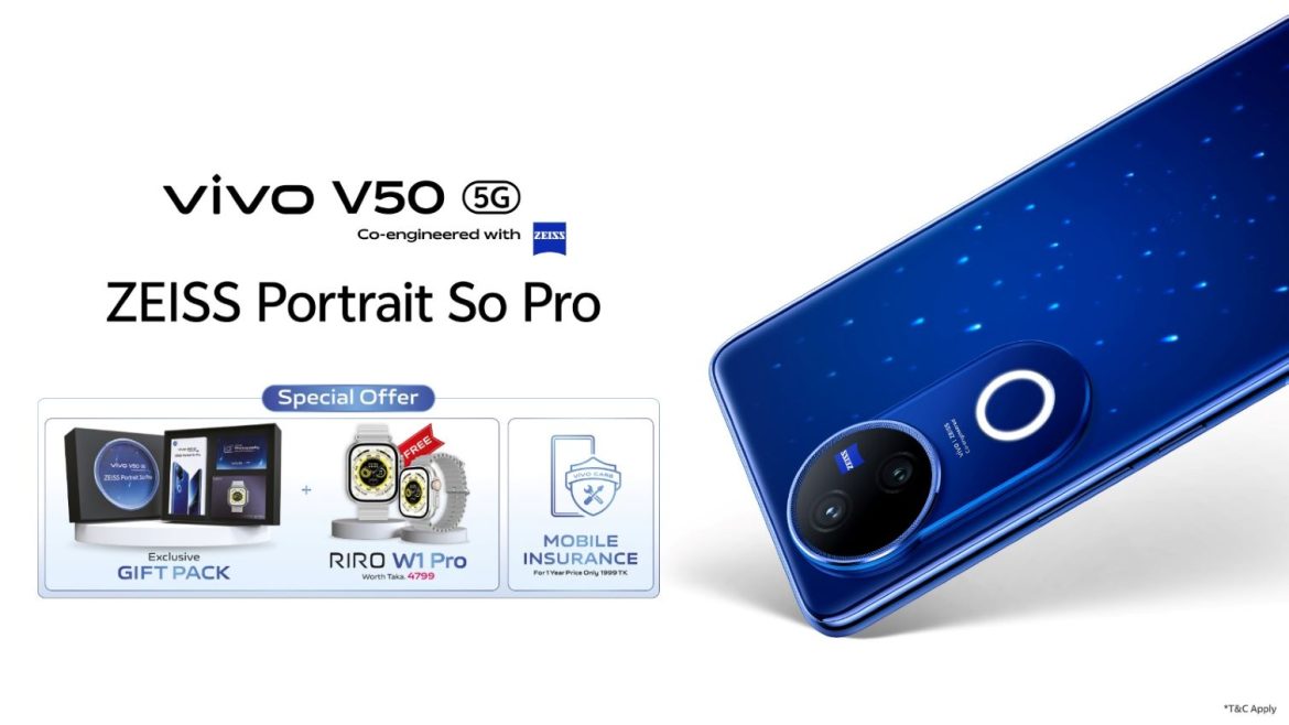আনুষ্ঠানিকভাবে উন্মোচন করা হলো ভিভোর ভি সিরিজের সবচেয়ে উন্নত পোর্ট্রেট ফ্ল্যাগশিপ স্মার্টফোন। ’ভিভো ভি৫০ ফাইভ জি’ নামের এই স্মার্টফোনটির সবচেয়ে বড় আকর্ষণ জাইসের অল ৫০ মেগাপিক্সেল ক্যামেরা, যা মোবাইল ফটোগ্রাফিকে নিয়ে যাবে নতুন এক মাত্রায়। এতে পাওয়া যাবে প্রো-লেভেল বা উচ্চ মানের পোর্ট্রেট ফটোগ্রাফির সুবিধা। ক্যামেরার দক্ষতার বাইরেও ভিভো ভি৫০ ফাইভ জি-তে রয়েছে আকর্ষণীয় ডিজাইন, শক্তিশালী ও স্লিম ৬০০০ এমএএইচ ব্লুভোল্ট ব্যাটারি এবং অত্যন্ত দ্রুতগতির ৯০ ওয়াট ফ্ল্যাশচার্জ প্রযুক্তি, যা নানা পরিস্থিতিতে ব্যবহারকারীকে দেবে আরও উন্নত অভিজ্ঞতা। ফোনটিতে থাকা সবগুলো ক্যামেরাই জাইসের ৫০ মেগাপিক্সেলের, যা পেশাদার মানের ছবি ধারণের জন্য অত্যন্ত উপযোগী। বিশেষ করে এর ৫০ এমপি জাইস ওআইএস মেইন ক্যামেরা ১/১.৫৫" সুপার- সেন্সিটিভ বড় সেন্সর ব্যবহার করে দুর্দান্ত লাইট ক্যাপচার করে। ফোনটিতে আছে জাইসের মাল্টিফোকাল পোর্ট্রেট ফিচার, যেটি ২৩ মি.মি., ৩৫ মি.মি. বা ৫০ মি.মি. ফোকাল লেন্থে পোর্ট্রেট শট নেওয়ার সুযোগ দেয়। ফলে প্রতিটি ছবি পাবে আরও প্রিমিয়াম ও প্রফেশনাল লুক। রয়েছে সিআইপিএ ৪.০ ডিএসএলআর লেভেলের স্ট্যাবিলাইজেশন। এতে হাত নড়ে গেলেও রাতে তোলা যে কোনও ছবিও থাকবে স্পষ্ট ও সুন্দর।
