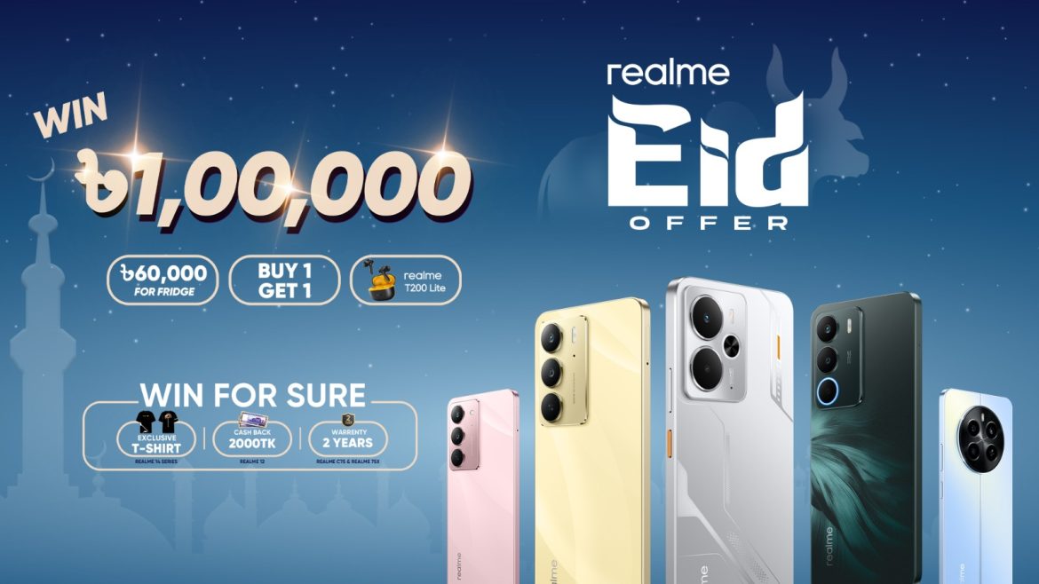 তরুণদের প্রিয় কনজ্যুমার টেকনোলজি ব্র্যান্ড রিয়েলমি বাংলাদেশে তাদের বিশেষ ঈদ ক্যাম্পেইন ঘোষণা করেছে। এবার ঈদে ব্যবহারকারীদের মাঝে ঈদের আনন্দ ছড়াতে প্রস্তুত ব্র্যান্ডটি। সীমিত সময়ের এ ক্যাম্পেইনটি কেবল বড় কিছু জেতার সুযোগই দিচ্ছে না, বরং প্রত্যেক অংশগ্রহণকারীর জন্যই নিশ্চিত করছে আকর্ষণীয় উপহার।