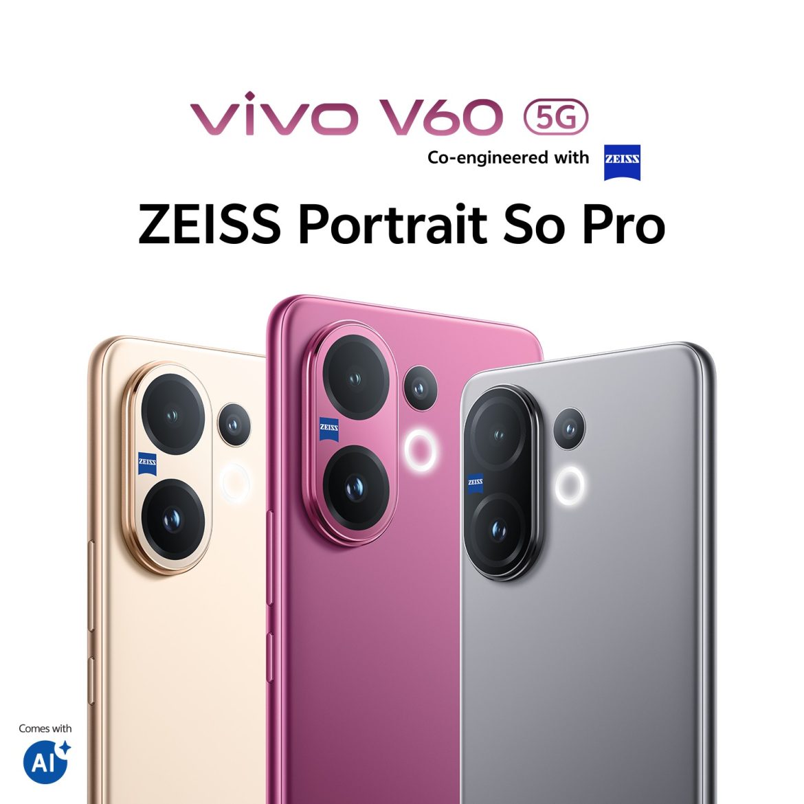 এছাড়াও, এতে আছে নতুন ১০গুন টেলিফটো স্টেজ পোট্রেট যা, দূর থেকেও স্পটলাইটে থাকা বিষয়বস্তুর ডিটেইলস নিখুঁতভাবে ধরে রাখে। বিশেষ করে, এতে আছে টেলিফটো ওয়েডিং পোর্ট্রেট মোড। যা দিয়ে ৮৫মিমি -১০০ মিমি পর্যন্ত ক্লোজ-আপ পোর্ট্রেট শটে মুহূর্তগুলো থাকে আরও ক্লিয়ার। আর স্পেশাল ক্যান্ডিড মুহূর্তগুলোকে ক্যাপচার হয় নিখুঁতভাবে। এর ল্যান্ডস্কেপ পোর্ট্রেট মোড পাহাড়ি দৃশ্য বা ব্যস্ত শহর ভ্রমণের ছবি তুলতে একদম আদর্শ। এছাড়াও আছে ৫০ মেগাপিক্সেল জাইস ওআইএস মেইন ক্যামেরা, ৮ মেগাপিক্সেল জাইস আল্ট্রা ওয়াইড এঙ্গেল ক্যামেরা ও ৫০ মেগাপিক্সেল জাইস গ্রুপ সেলফি ক্যামেরা ভিড় বা ব্যস্ততায় স্ট্যাবল ভিডিও এবং প্রতিটি প্রিয় মানুষকে এক ফ্রেমে নিশ্চিত করে। পাশাপাশি, ক্যানভাসের রঙের তুলির মতো ছবিকে সাজায় ভিভোর এআই স্টুডিও । এর নতুন এআই ফোর সিজন মোডে গ্রীষ্ম, শীত, শরৎ বা বসন্তের আবহে ছবিকে সাজানো যায়। এছাড়াও, এআই টুলস দিয়ে সহজেই এডিট বা যেকোনো অবজেক্ট ইরেজ করা যায়। ডিজাইনের ক্ষেত্রে ইক্যুয়াল ডেপথ কোয়াড কার্ভড স্ক্রিন ও আল্ট্রা স্লিম বেজেল নিশ্চিত করে ইনফিনিটি ভিজ্যুয়াল এক্সপেরিয়েন্স। তিনটি রঙে পাওয়া যাচ্ছে ভিভো ভি৬০—বেরি পার্পল, মিস্ট গ্রে ও ডেজার্ট গোল্ড। তবে সবার মন কেড়ে নিচ্ছে বেরি পার্পল রঙের ফোনটি। যা, ফুটিয়ে তোলে তারুণ্যের উজ্জ্বলতা ও আভিজাত্য।